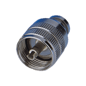 UHF-Male (PL-259) / BNC-Female | P/N: 30.AD025.00 | From DC to 500 MHz | Nickel plated brass, POM insulator, Gold plated pin | |